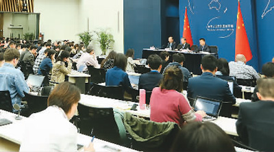 4月18日,外交部举行中外媒体吹风会。外交部长王毅表示,“一带一路”国际合作高峰论坛将于5月14日至15日在北京举行。 新华社记者 邢广利摄